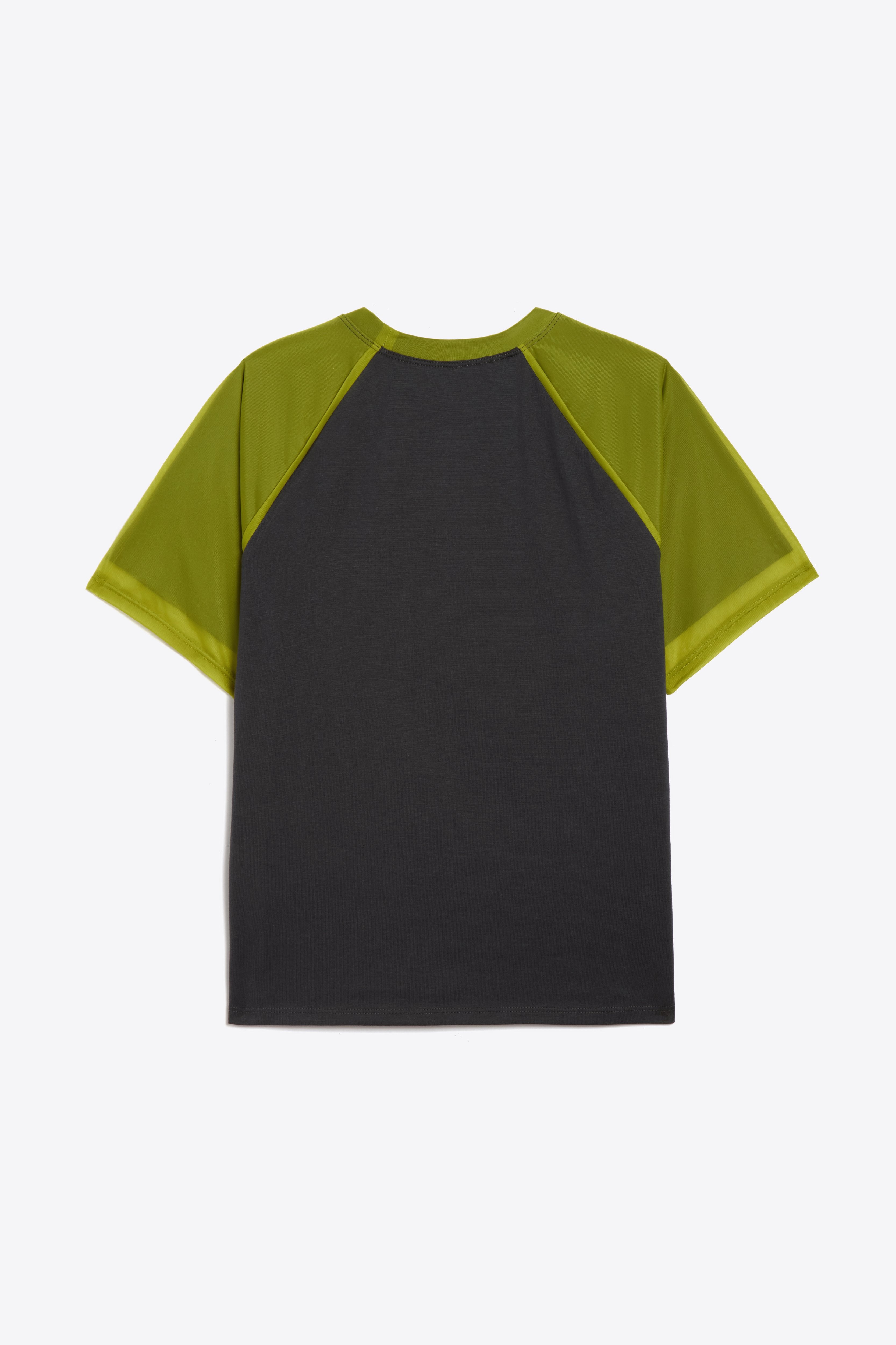 Cutie BB, our baseball tee is cut in a baby fit. Cut in Japanese soft cotton jersey and featuring overlay sheer sleeves.