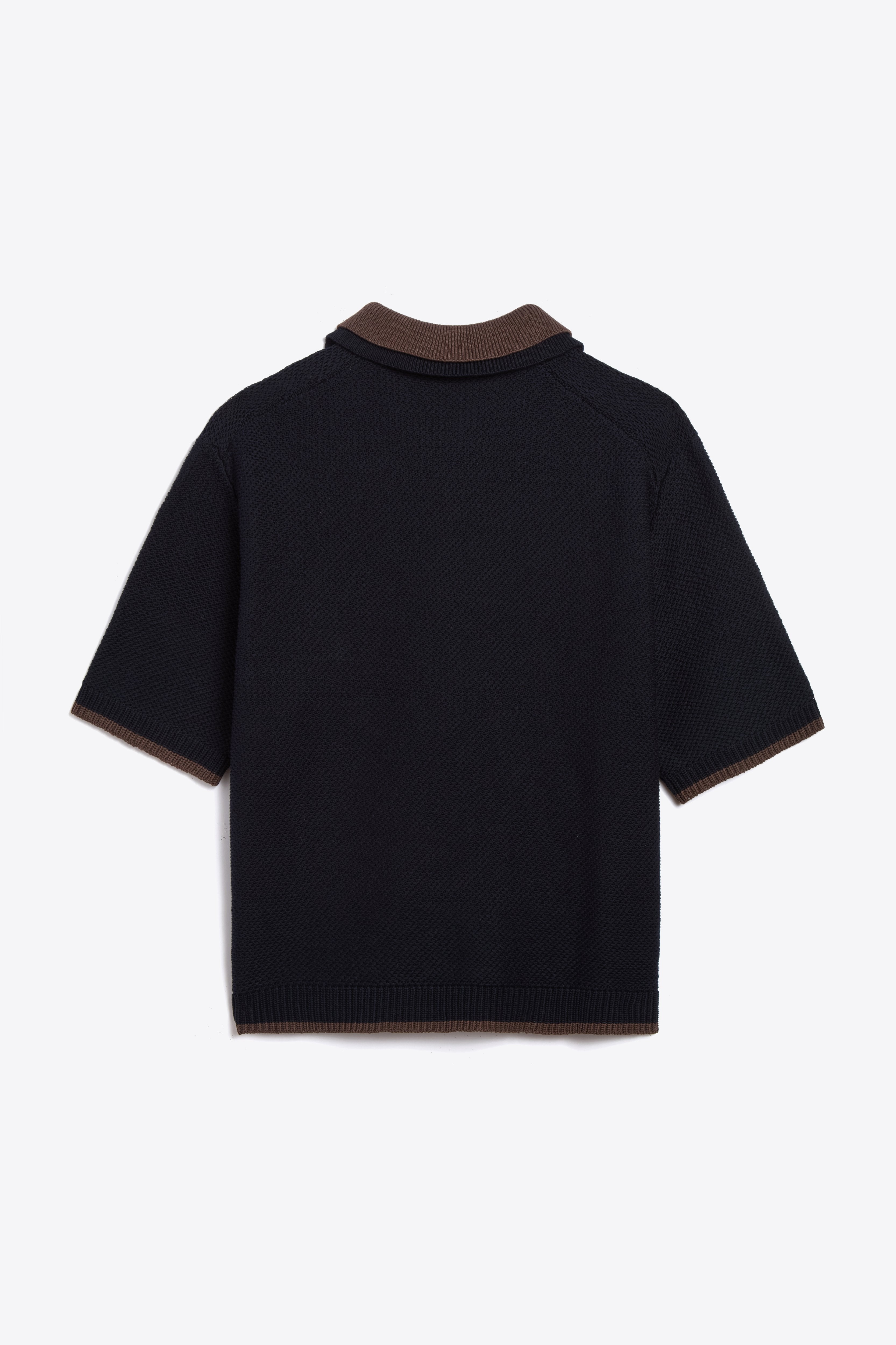 Pop it extreme, our signature double collar polo calls back to a preppier time. Knitted in mercerized cotton, with a slightly open stitch, it is perfect for all your warm weather adventures. Cropped, boxy fit with contrast tipping at sleeve and hem.