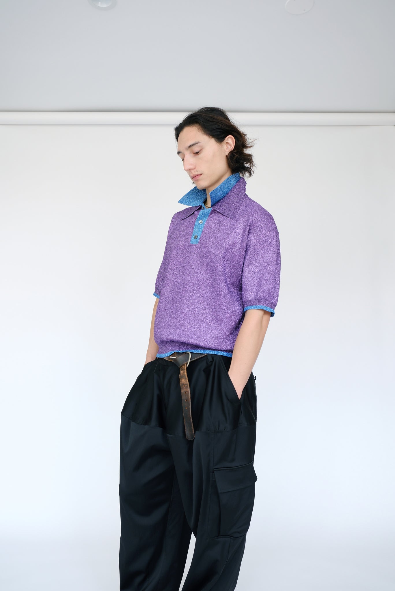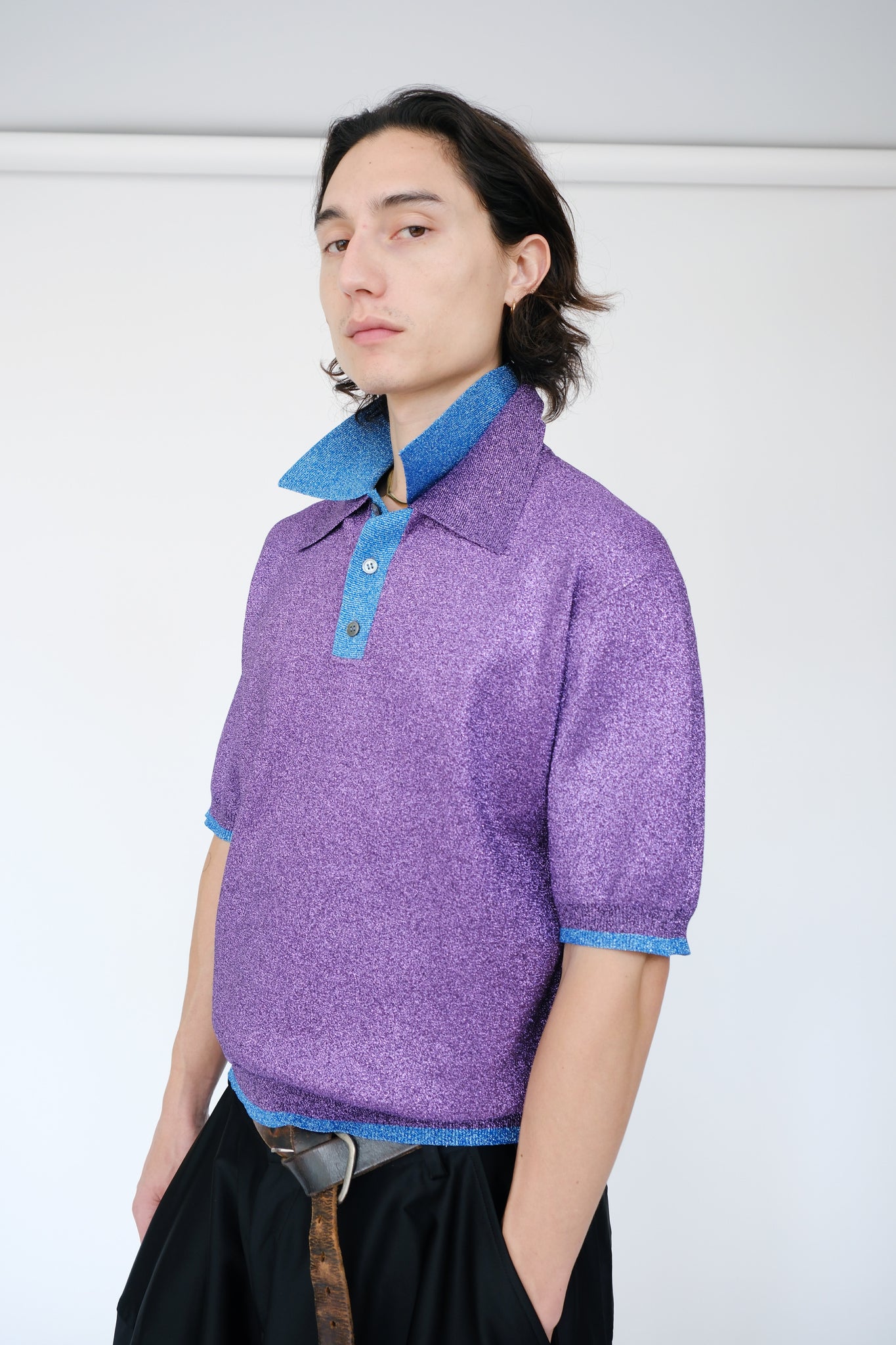 Razzle and dazzle, the polo shirt gets a sparkly update in our signature knitted lurex. Features a double collar construction so you can...pop it...we know you want to.