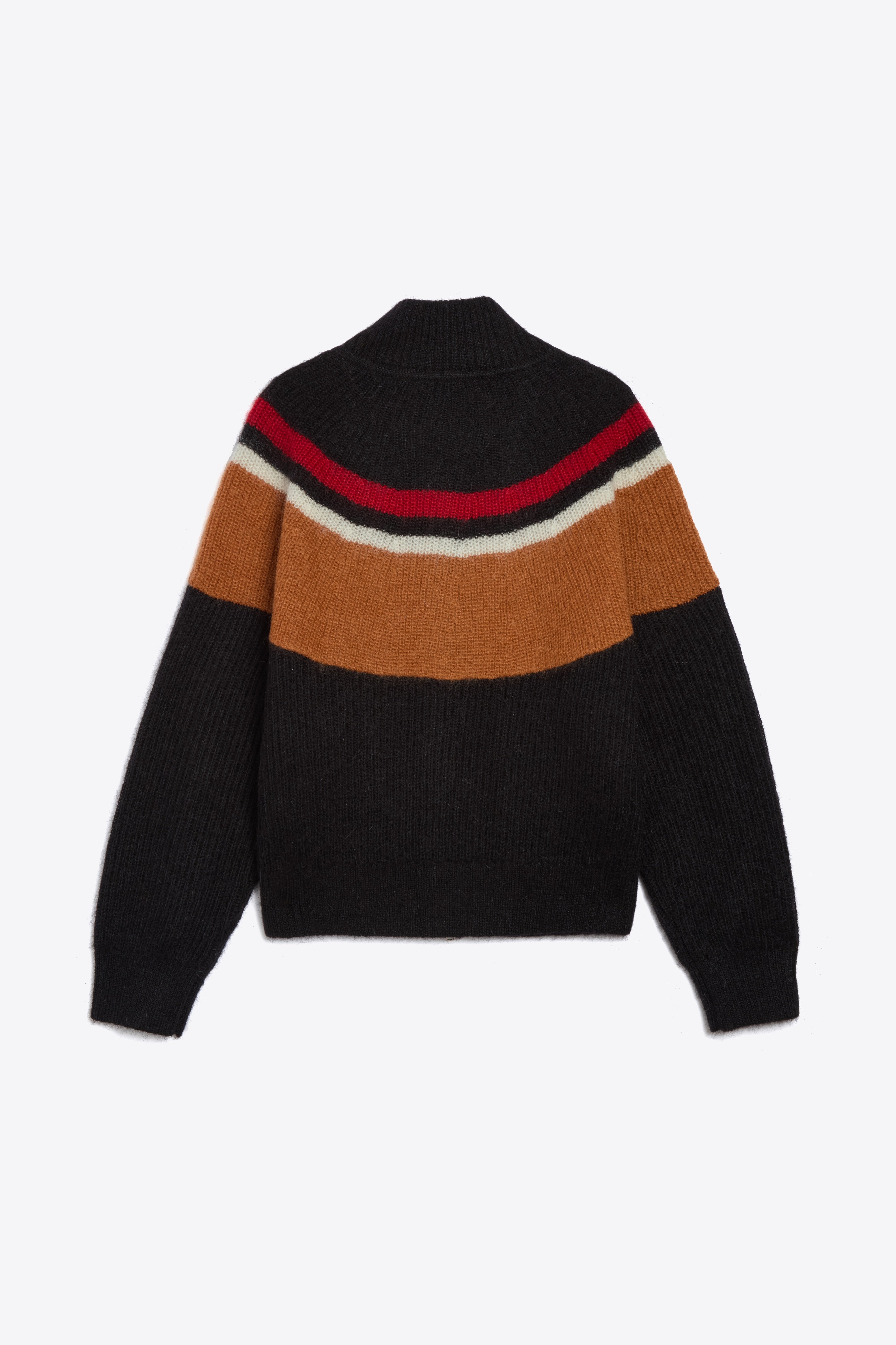 A textual take on sporty, our track jacket is knitted from Italian mohair blend yarn to give it a lightweight, hairy texture. Engineered with a circular yoke, and highlighted by the contrast stripe panels, it is an easy layering piece. Patched hand pockets with double ended front zippers.