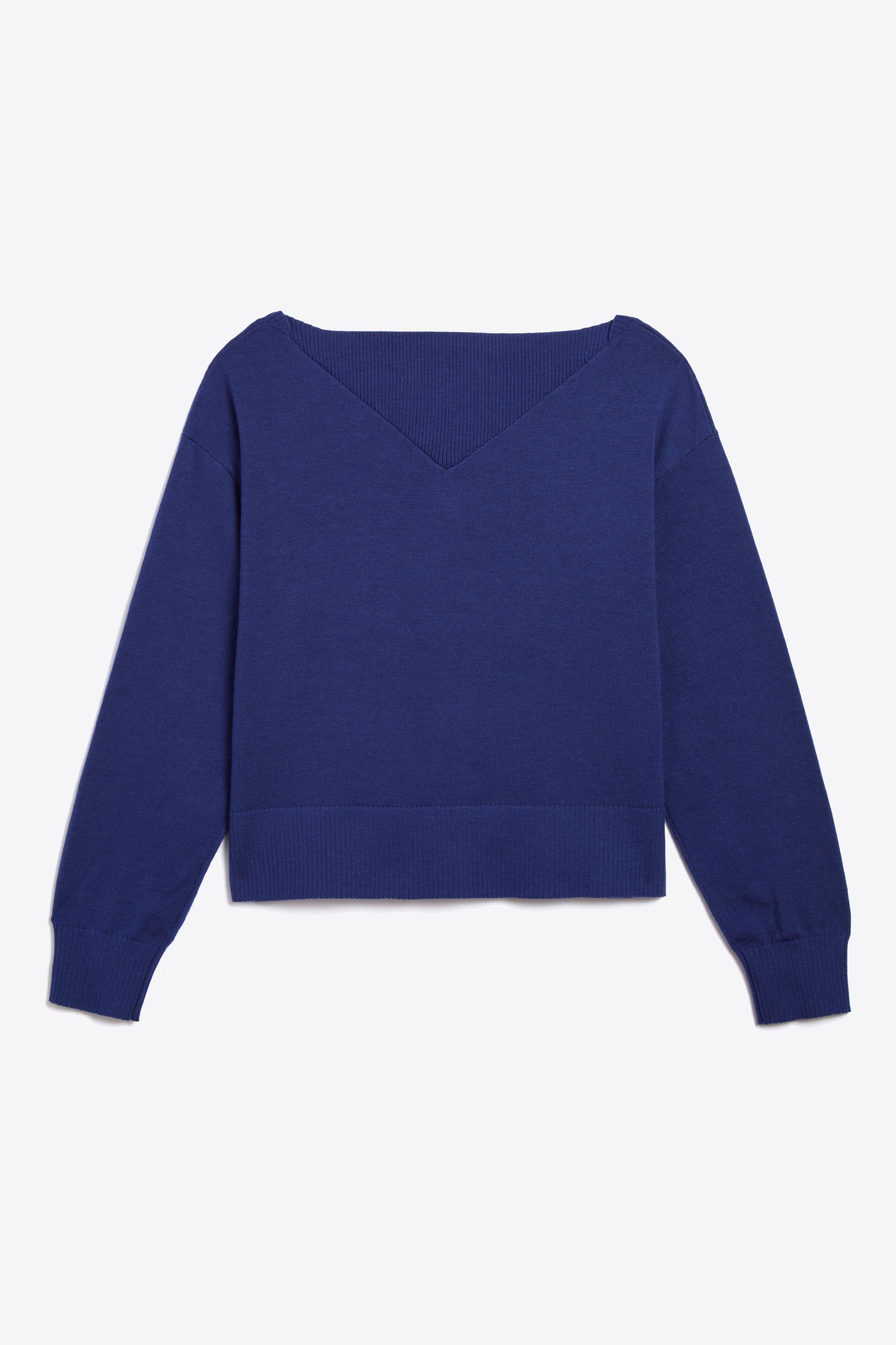 Scoop you better do! Our cropped, boxy cardigan features an exaggerated neckline that hits right at the shoulder but can also be worn slightly off. Knitted in fine merino wool, it is accented by our "Tone" shaped rib back. Part of a twin-set with our Duet Knit vest.