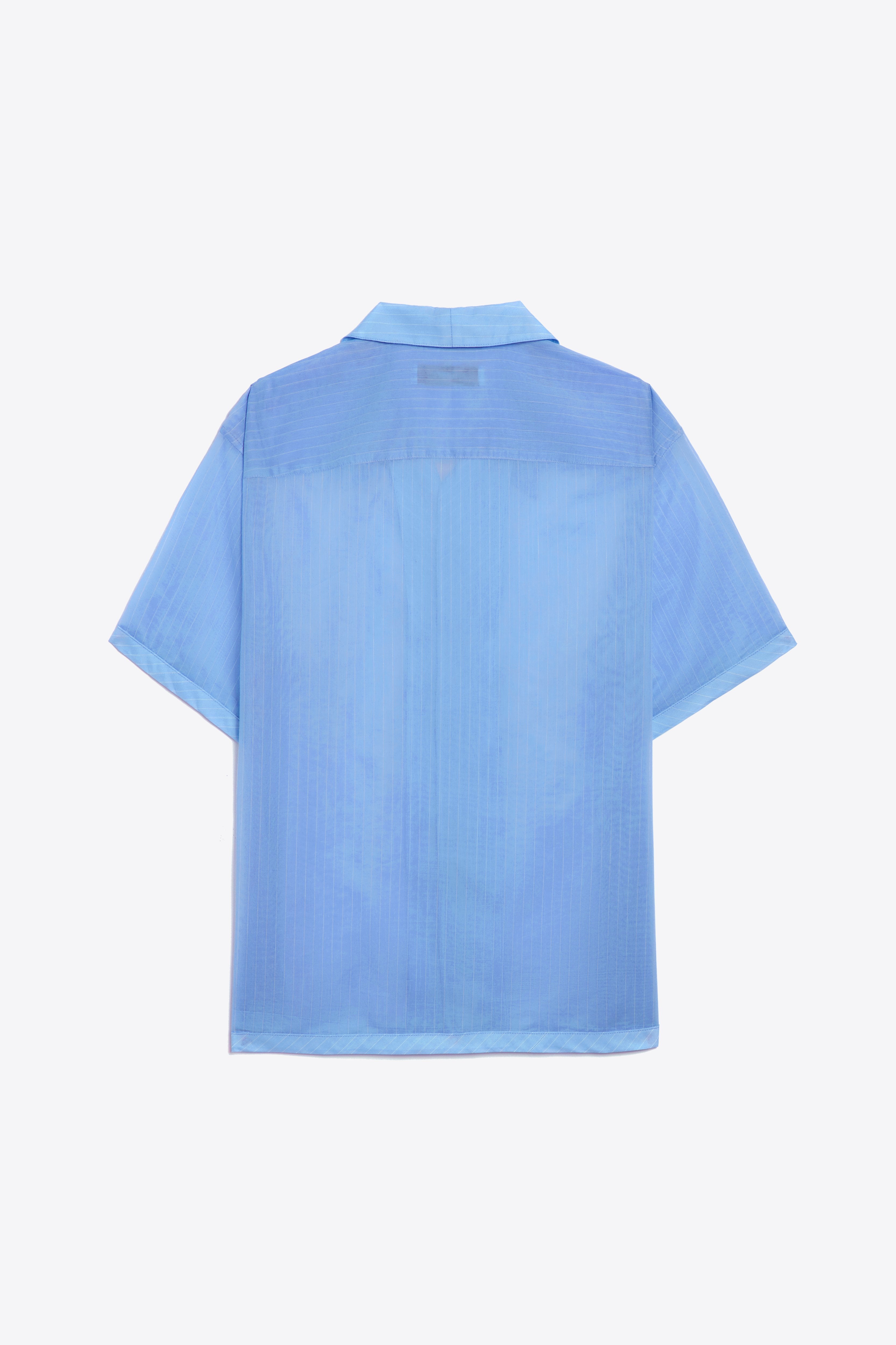 The quintessential summer shirting, period. Cut in our Italian silk cotton micro stripe voile, this short sleeve shirt plays with sheerness with a convertible collar. Finished with self bound sleeve and body hem.